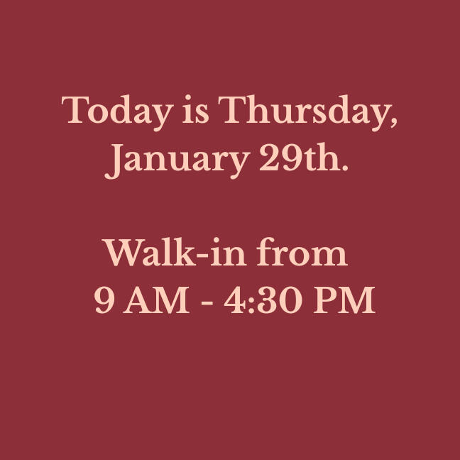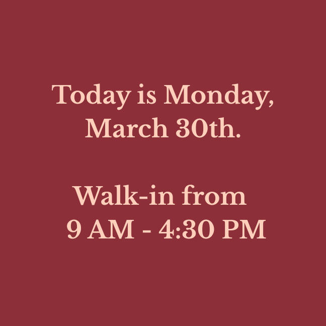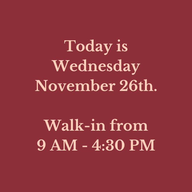 Our walk-in hours are updated daily. Please verify before making a long drive!