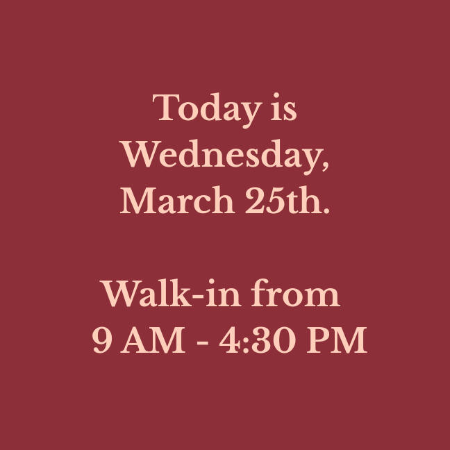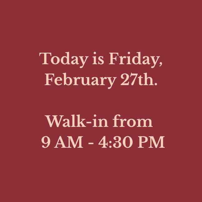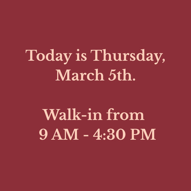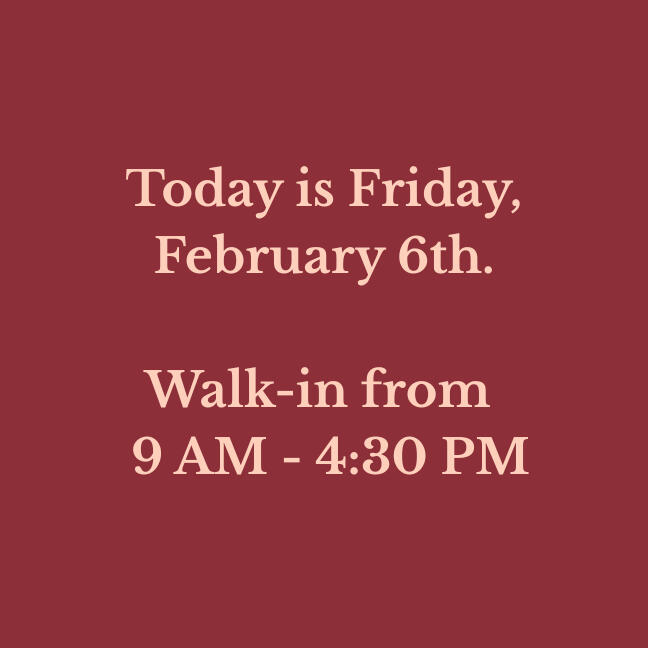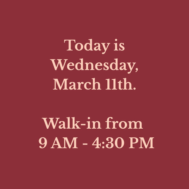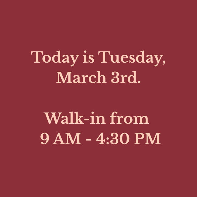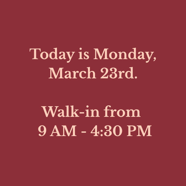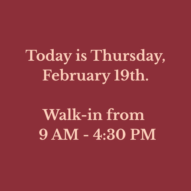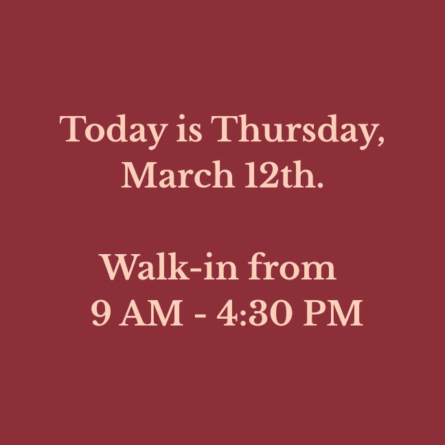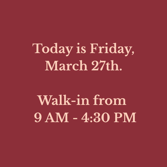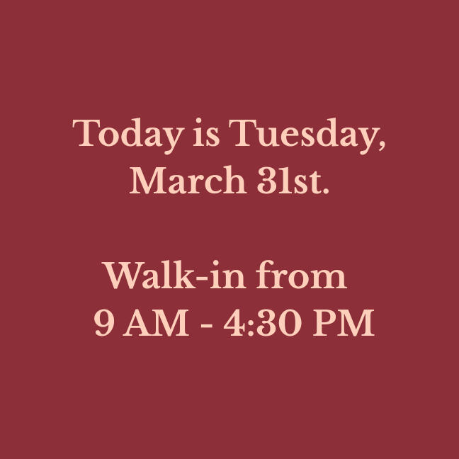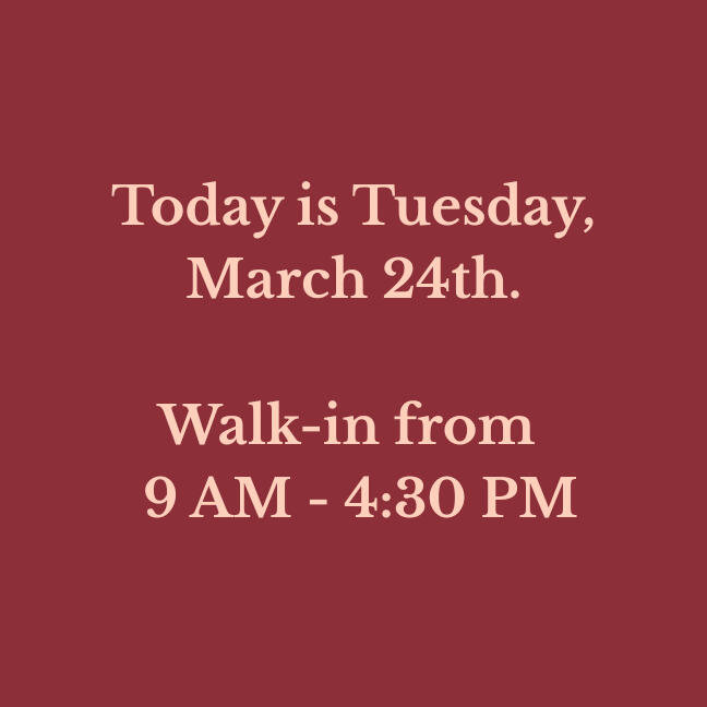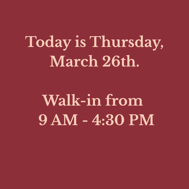 Our walk-in hours are updated daily. Please verify before making a long drive!