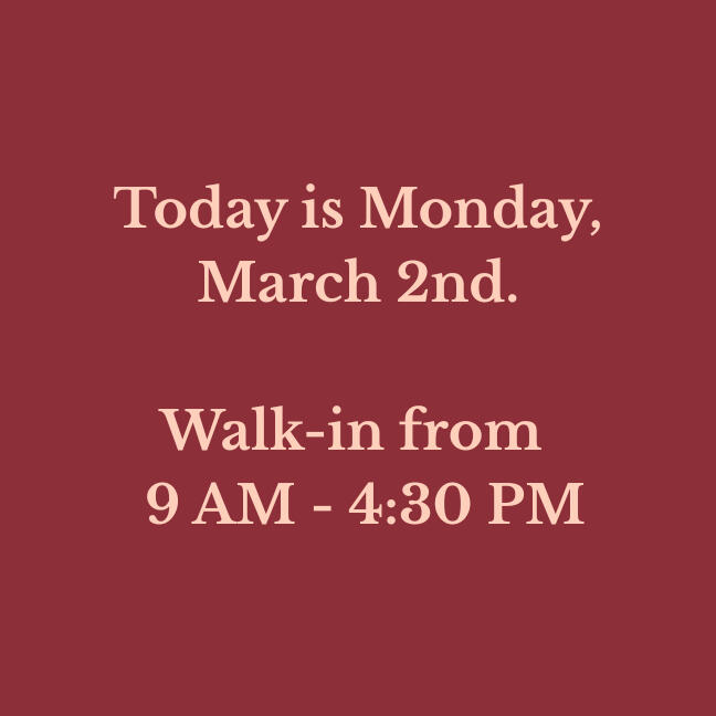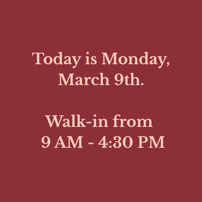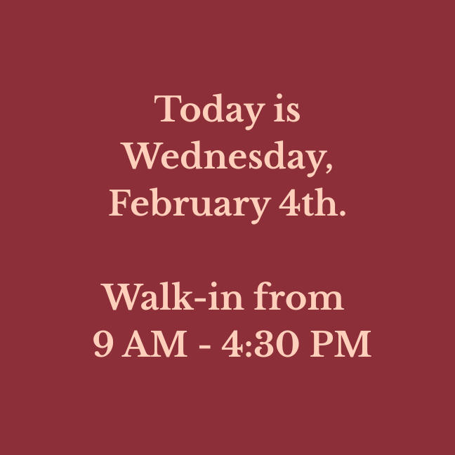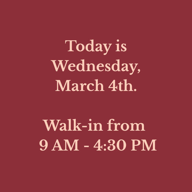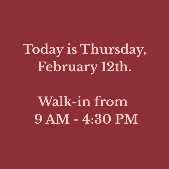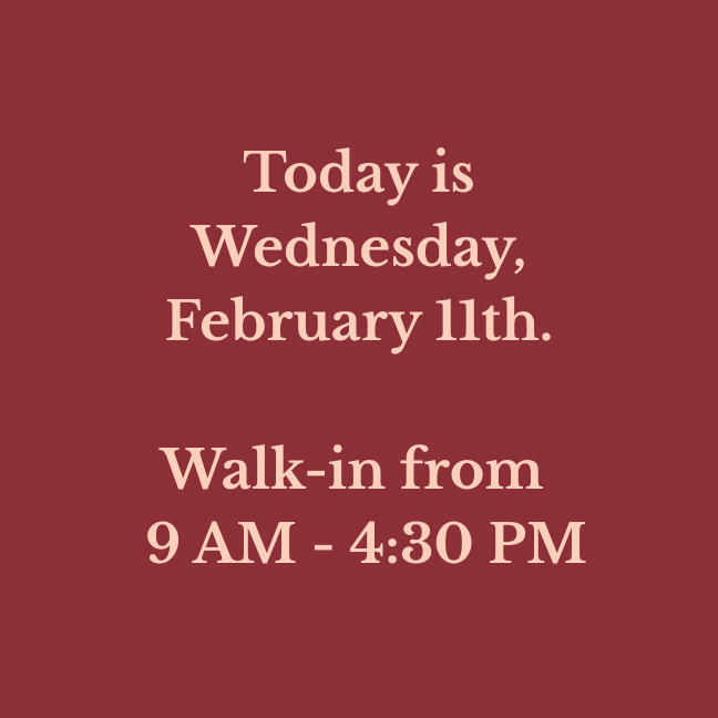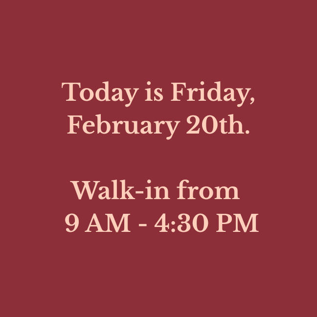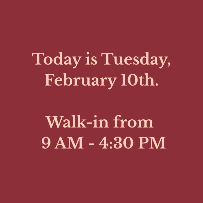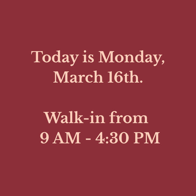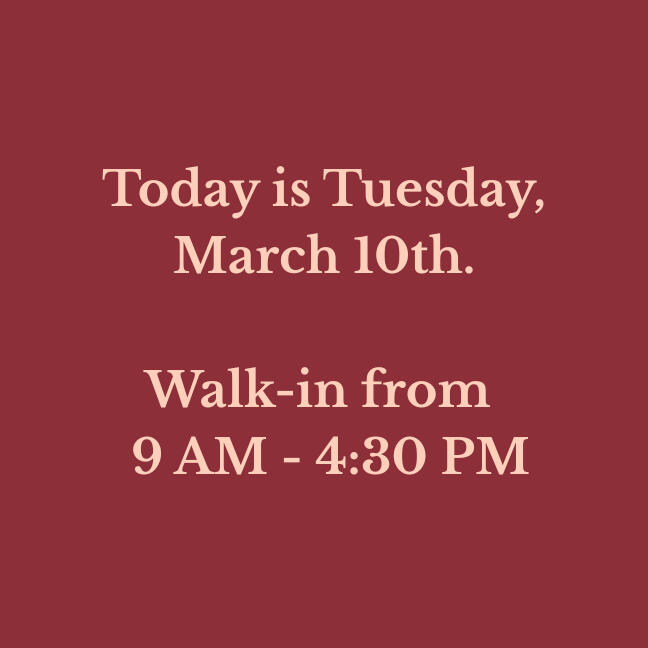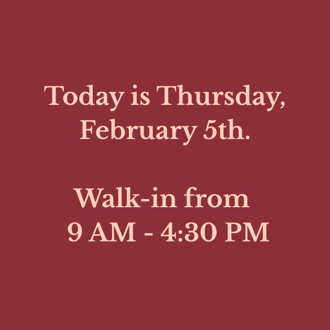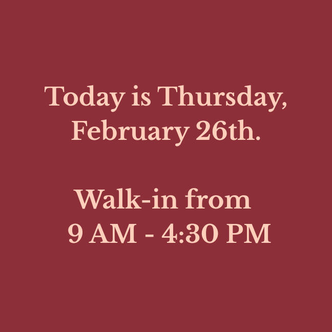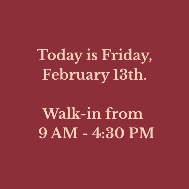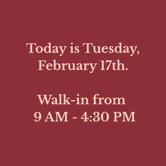 Our walk-in hours are updated daily. Please verify before making a long drive!